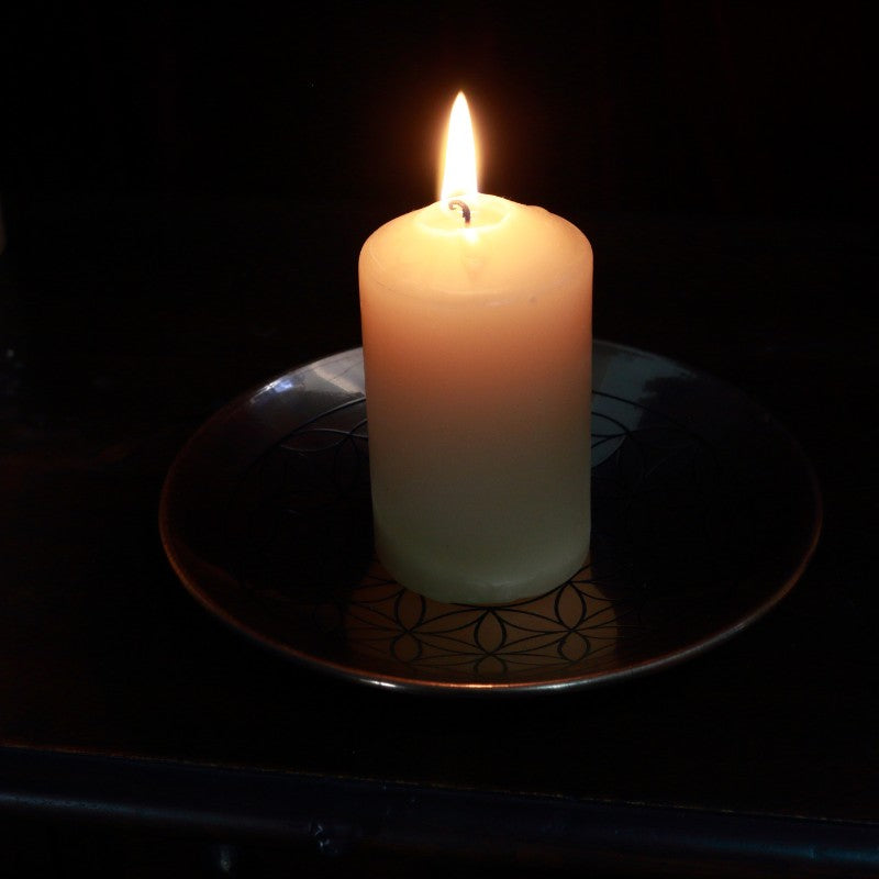 Copper Engraved Flower Of Life Altar Plate/ Offering Plate/ Candle Holder
