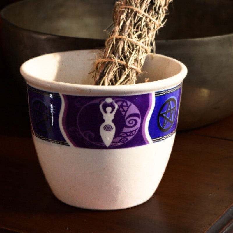 Crafted from ceramic, this smudge bowl is the ideal vessel to use when burning your smudge sticks/ smoke cleansing bundles. It also doubles as a decorative place to store your smudge stick when not in use.