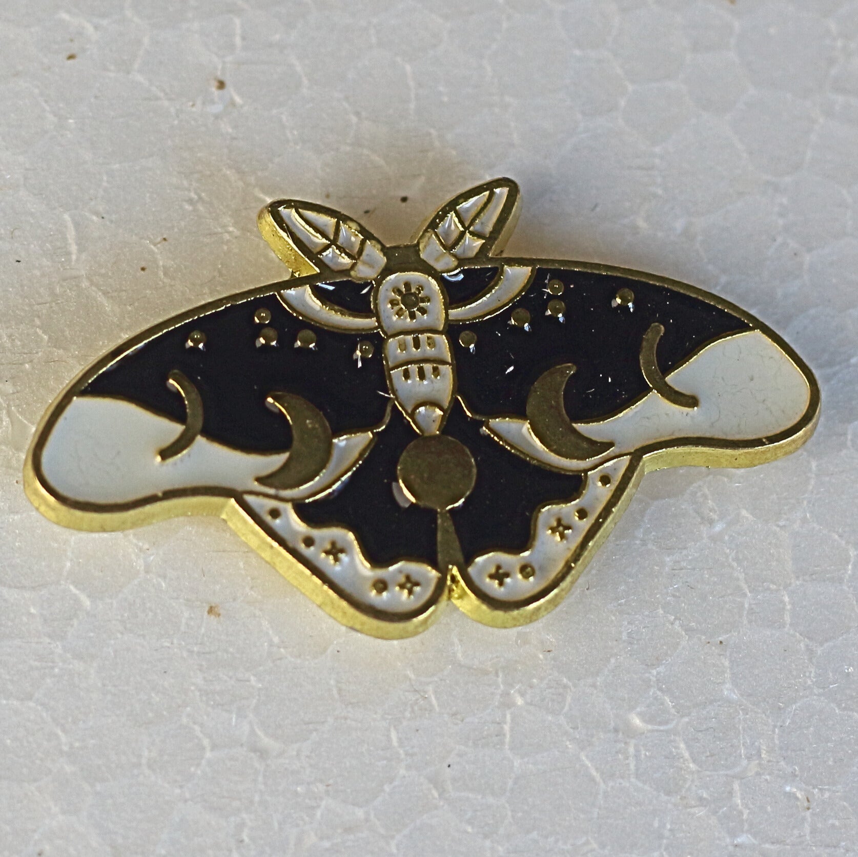 Lunar Moth Witchy Enamel Badge, Bag Charm Or Hat Pin
