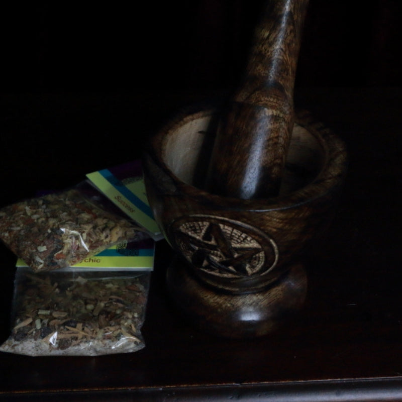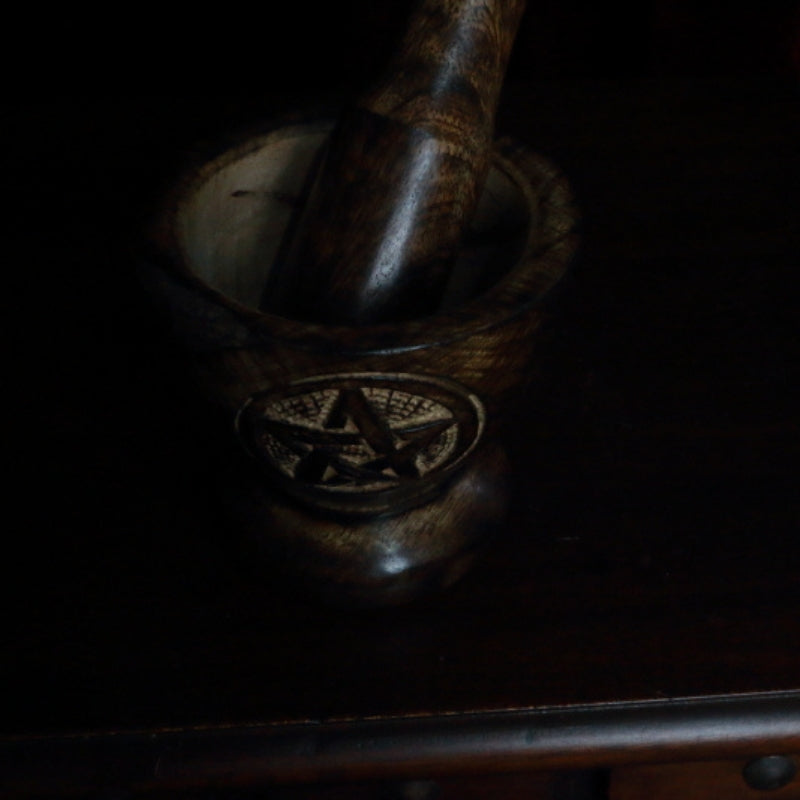 Whether you're looking for a way to enhance your plant magick, or simply want to add a touch of rustic charm to your home, this wooden mortar and pestle is perfect.