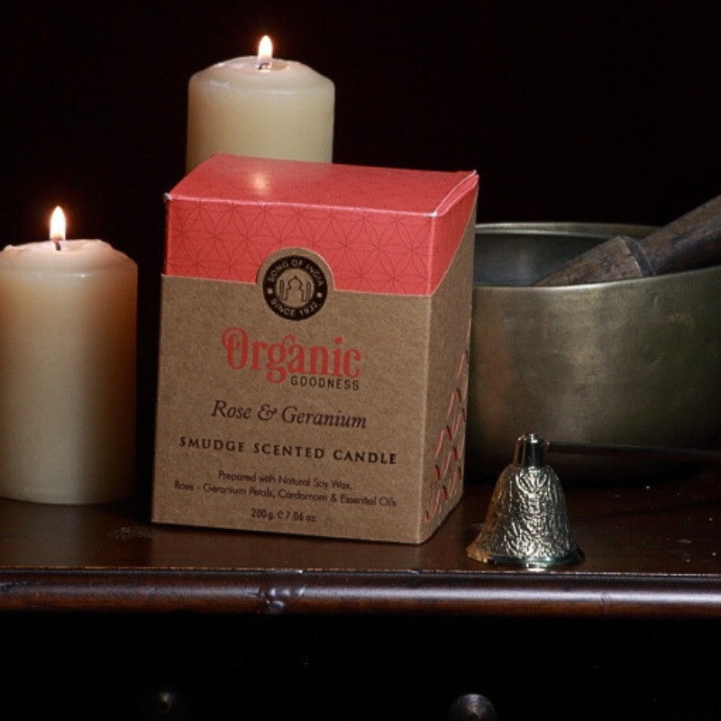 - Rose & Geranium- Prepared with soy wax, Rose Geranium petals, Cardamom, essential oils and a pure cotton wick.