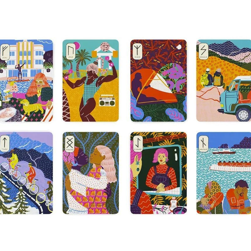 Wondering about romance, finances, or career? Consult the runes and awaken your intuition. The deck includes: 24 cards featuring a colourful contemporary illustration along with a symbol of the runic alphabet. Detailed booklet explaining the different interpretations of each rune and various ways to use them for the present day.